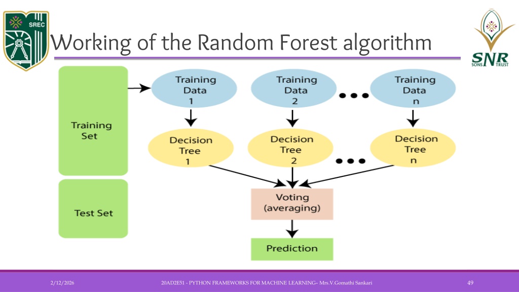 Working of the Random Forest algorithm 20AD2E51 - PYTHON FRAMEWORKS FOR MACHINE LEARNING– Mrs.V.GomathiSankari
