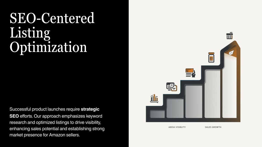 7. SEO-Centered Listing Optimization Successful product launches require strategic SEO efforts. Our approach emphasizes keyword research and optimized listings to drive visibility, enhancing sales potential and establishing strong market presence for Amazon sellers.