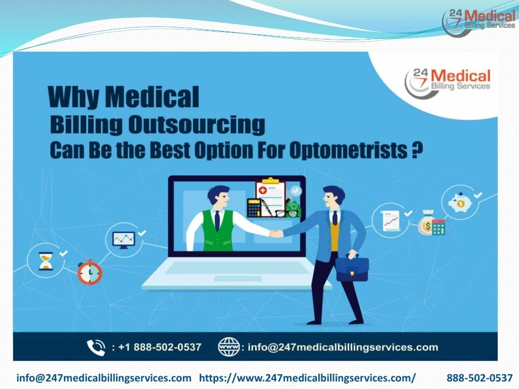 Why Medical Billing Outsourcing Can Be the Best Option For Optometrists? The primary reason for a lot of businesses turning towards outsourcing is saving time and money and getting things streamlined; therefore, the focus on improving the business stands first. Your eye-care practice is even like any other business. To overcome your overhead costs and inefficient optometry billing, outsourcing it to a best third-party service provider will be a good idea. Why Outsource Optometry Billing? Time is a precious thing and it is money as well. Eye-care requires spending huge time with patients and physicians may not get ample time to look at their everyday billing cautiously. The fact is there are other time-consuming tasks that may distract you from focusing on patients. Your in-house staffs may not be able to multitask medical billing and other processes in operations. Most of the times it may end up in misleading of claims and not getting reimbursements on time. info@247medicalbillingservices.com https://www.247medicalbillingservices.com/ 888-502-0537