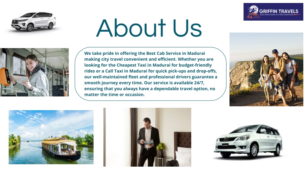 About Us We take pride in offering the Best Cab Service in Madurai making city travel convenient and efficient. Whether you are looking for the Cheapest Taxi in Madurai for budget-friendly rides or a Call Taxi in Madurai for quick pick-ups and drop-offs, our well-maintained fleet and professional drivers guarantee a smooth journey every time. Our service is available 24/7, ensuring that you always have a dependable travel option, no matter the time or occasion.