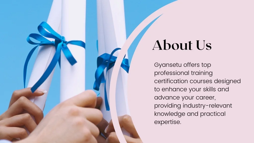 About Us Gyansetu offers top professional training certification courses designed to enhance your skills and advance your career, providing industry-relevant knowledge and practical expertise.
