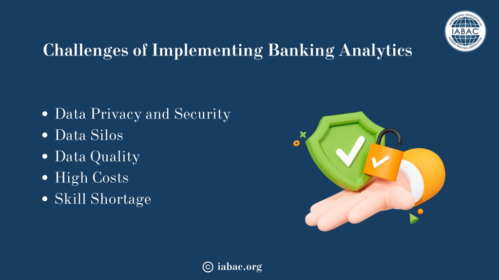 Challenges of Implementing Banking Analytics Data Privacy and Security Data Silos Data Quality High Costs Skill Shortage iabac.org