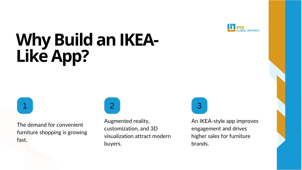2. Agenda UI/UX, 3D Modeling & AR Preparation Introduction to Furniture eCommerce Apps Why Build an IKEA- Like App? Development Process Market Research & Buyer Understanding Cost Breakdown Launch, Support & Scaling Must-Have Features Why Choose IMG Global Infotech Choosing the Right Tech Stack