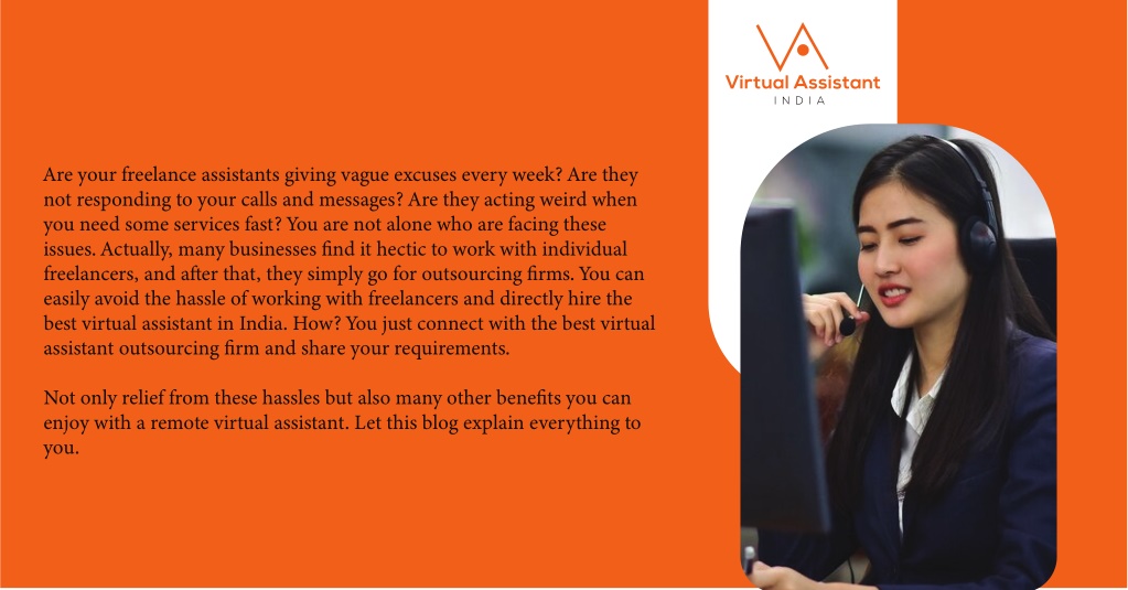 If you are looking for a highly skilled remote virtual assistant who is also an expert in speaking and writing English, you should visit India Virtual Assistant as soon as possible. Here, you will meet the best virtual assistants who will help you cut costs and enhance productivity by handling all non-core, important business tasks. Just browse the website and check the range of services you can enjoy with a VA hired from India Virtual Assistant. <br><br>Visit us : https://indiavirtualassistant.com/