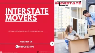 INTERSTATE MOVERS +10 Years Of Experience in Moving Industry Contact US 0390563705 info@interstatemovers.com.au www.interstatemovers.com.au