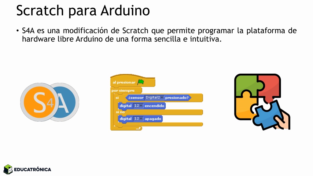 Scratch para Arduino • S4A es una modificación de Scratch que permite programar la plataforma de hardware libre Arduino de una forma sencilla e intuitiva.
