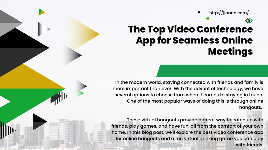 http://jjaann.com/ The Top Video Conference App for Seamless Online Meetings In the modern world, staying connected with friends and family is more important than ever. With the advent of technology, we have several options to choose from when it comes to staying in touch. One of the most popular ways of doing this is through online hangouts. These virtual hangouts provide a great way to catch up with friends, play games, and have fun, all from the comfort of your own home. In this blog post, we'll explore the best video conference app for online hangouts and a fun virtual drinking game you can play with friends.