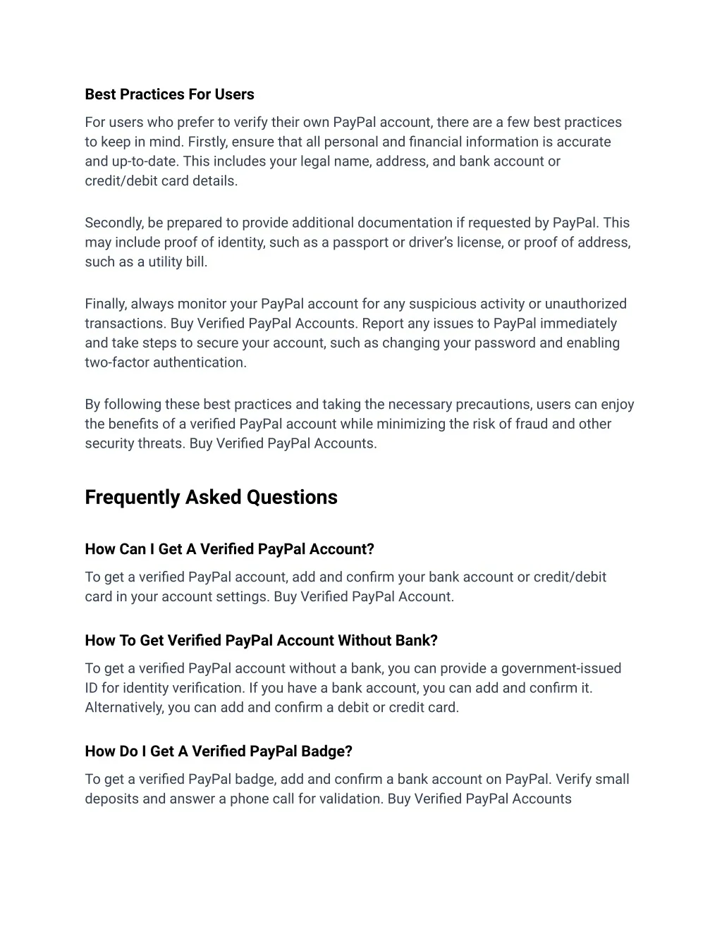 opportunity to enhance their understanding of how to effectively utilize PayPal for various purposes. Upcoming Educational Events Stay tuned for our upcoming workshops and webinars on PayPal usage. These events are designed to provide practical tips and guidance on maximizing the benefits of using PayPal for personal and business transactions. How To Participate ● Register for the event on our website ● Join the webinar at the scheduled time ● Engage with industry experts and ask questions ● Implement the learnings in your PayPal transactions ● Buy Verified PayPal Accounts. Participating in these workshops and webinars is a great way to improve your PayPal skills and stay updated on the latest trends in online payment methods. Concluding Thoughts On PayPal Verification Verifying your PayPal account is crucial to avoid transaction issues and increase your credibility as a seller or buyer. To buy verified PayPal accounts, look for reputable websites that offer transparent services at affordable prices. With a verified account, you can use PayPal for your business and enjoy its numerous benefits. Key Takeaways PayPal verification is a crucial step for users to ensure their account is secure and reliable for online transactions. Buy Verified PayPal Accounts. By confirming their identity and financial details, users can access a range of PayPal features and benefits. Buying verified PayPal accounts can be a convenient option for those who want to skip the verification process or have encountered issues with their current account. However, it is important to purchase from reputable sources and ensure the account is legitimate and not involved in any fraudulent activity.