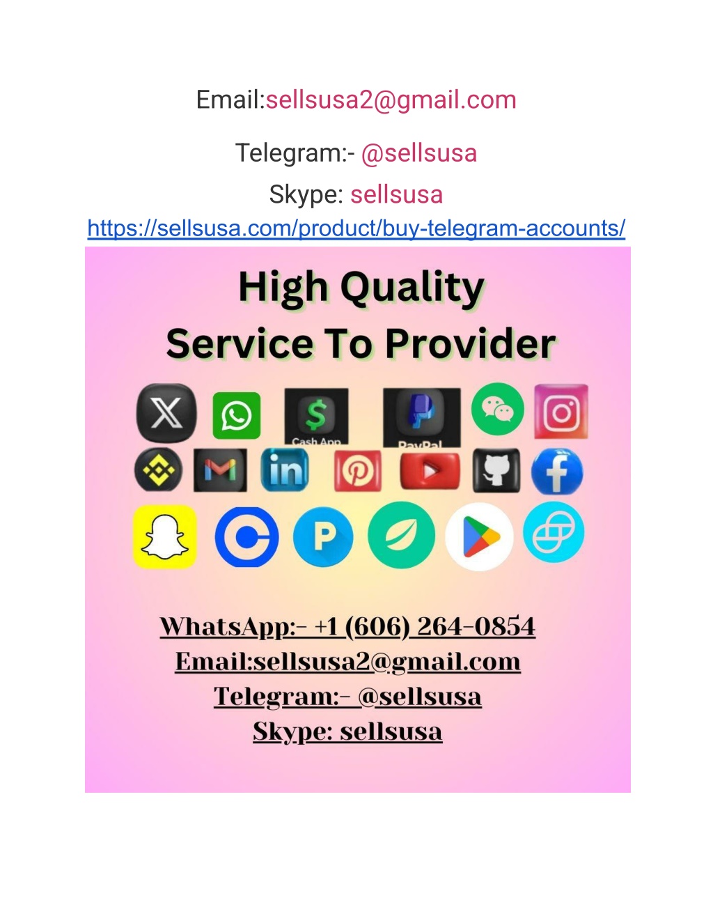 ● Excellent customer support is available to assist users throughout the purchasing process. Cons ● Limited to purchasing Telegram accounts and may not offer other related services. ● Pricing may vary depending on the specific features and metrics of the desired accounts. WhatsApp:- +1 (606) 264-0854 Email:sellsusa2@gmail.com Telegram:- @sellsusa Skype: sellsusa