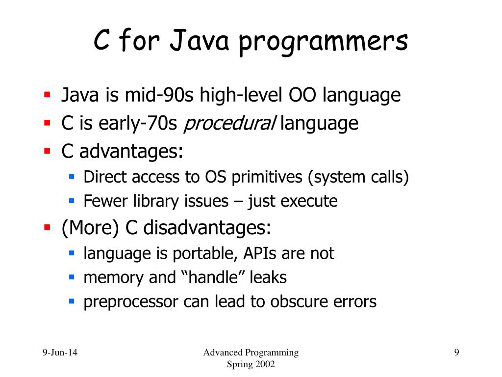 C vs. Java Advanced Programming Spring 2002