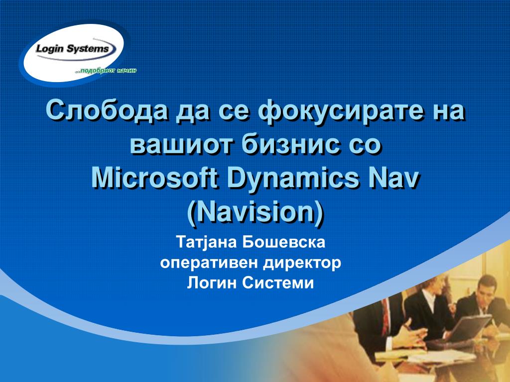 Слобода да се фокусирате на вашиот бизниссо Microsoft Dynamics Nav(Navision) Татјана Бошевска оперативен директор Логин Системи