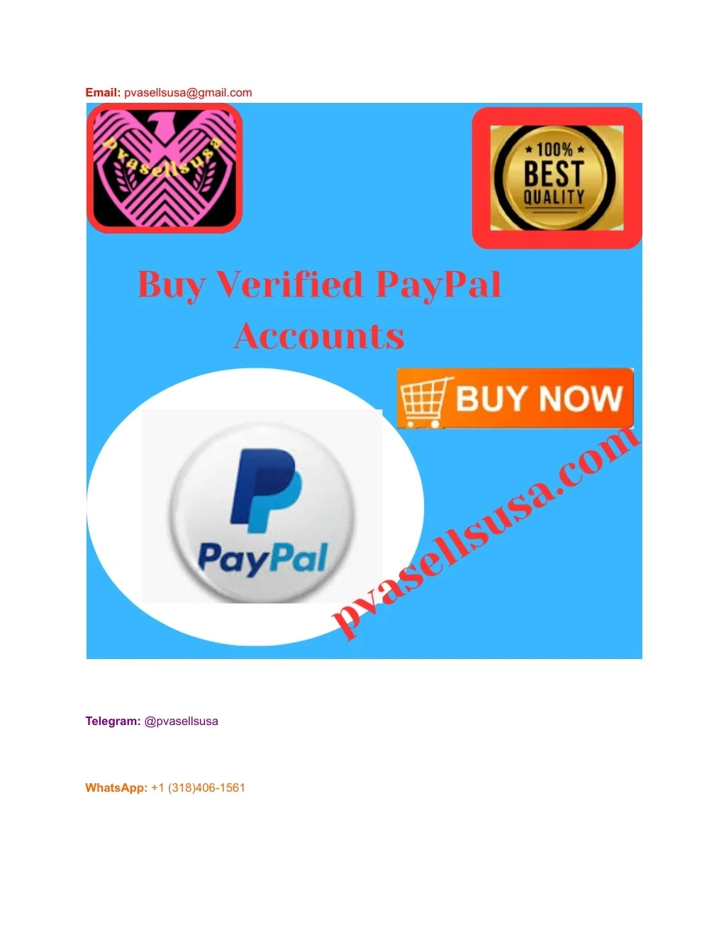 Buy Verified PayPal Accounts<br>$120.00 u2013 $400.00<br><br>Buy Verified PayPal Accounts<br><br>Email: pvasellsusa@gmail.com<br>Telegram: @pvasellsusa<br>WhatsApp: 1 (318)406-1561<br>https://pvasellsusa.com/product/buy-verified-paypal-accounts/<br><br>Buy Verified PayPal Accounts: Ensuring Safe Transactions with PVASellsUSA<br>In todayu2019s digital era, PayPal has emerged as a dominant force in online payments, facilitating secure transactions worldwide.However, obtaining a verified PayPal account<br>can be a cumbersome process, leading many individuals and businesses to seek alternative solutions.One such solution is purchasing veri