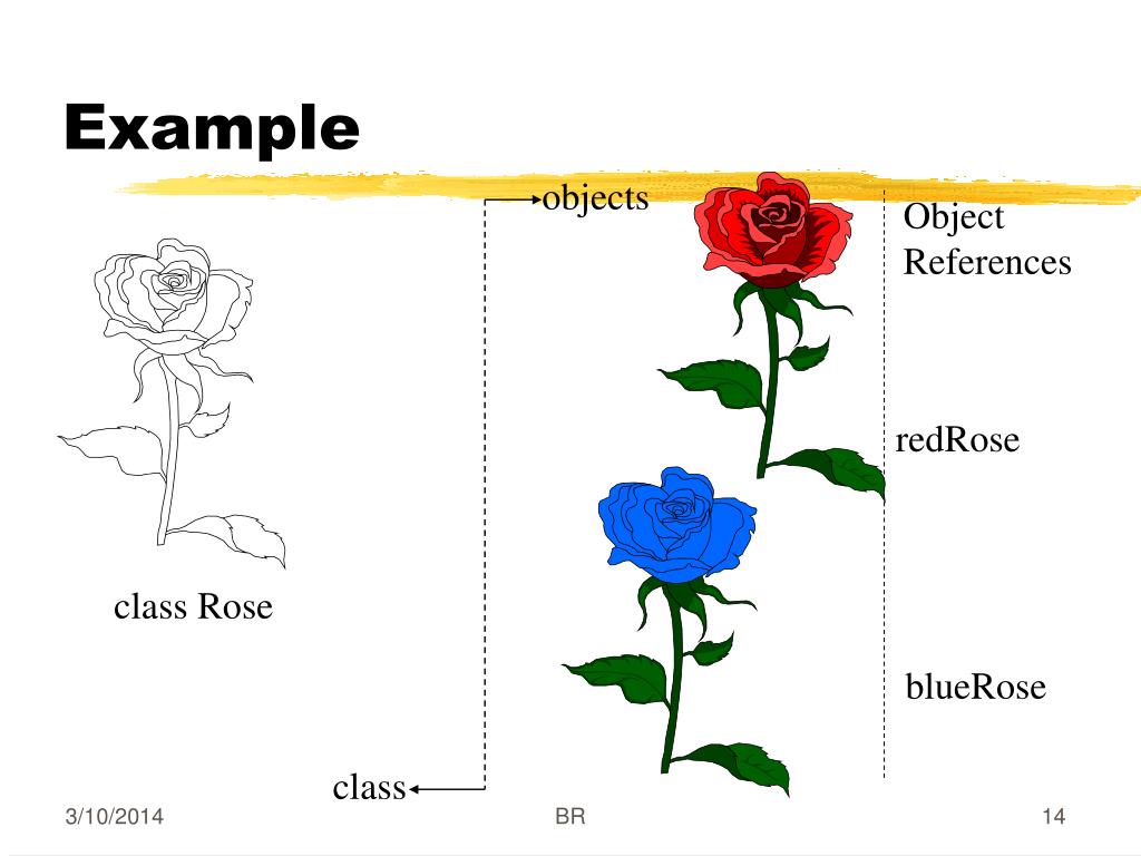 Operator new and “dot” • new operator creates a object and returns a reference to that object. • After an object has been instantiated, you can use dot operator to access its methods and data declarations (if you have access permissions). • EX: redRose.bloom(); greenHouse.color BR