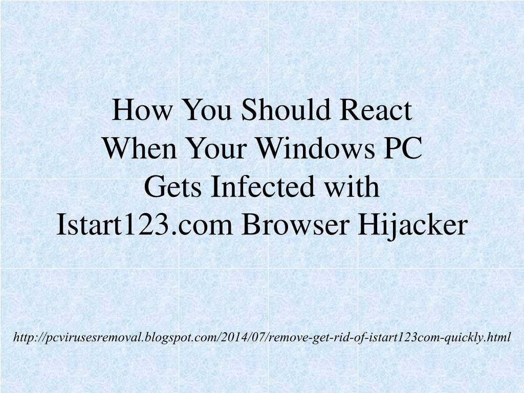 How You Should React When Your Windows PC Gets Infected with Istart123.com Browser Hijacker http://pcvirusesremoval.blogspot.com/2014/07/remove-get-rid-of-istart123com-quickly.html