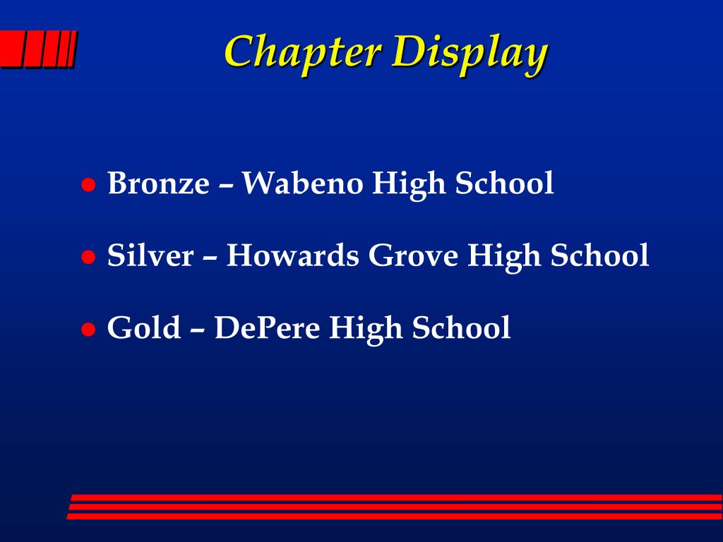 Chapter Display • Bronze – Wabeno High School • Silver – Howards Grove High School • Gold – DePere High School