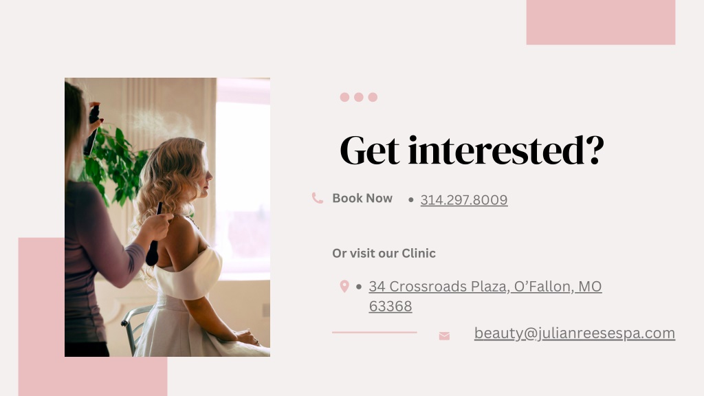 Get interested? Book Now 314.297.8009 Or visit our Clinic 34 Crossroads Plaza, O’Fallon, MO 63368 beauty@julianreesespa.com