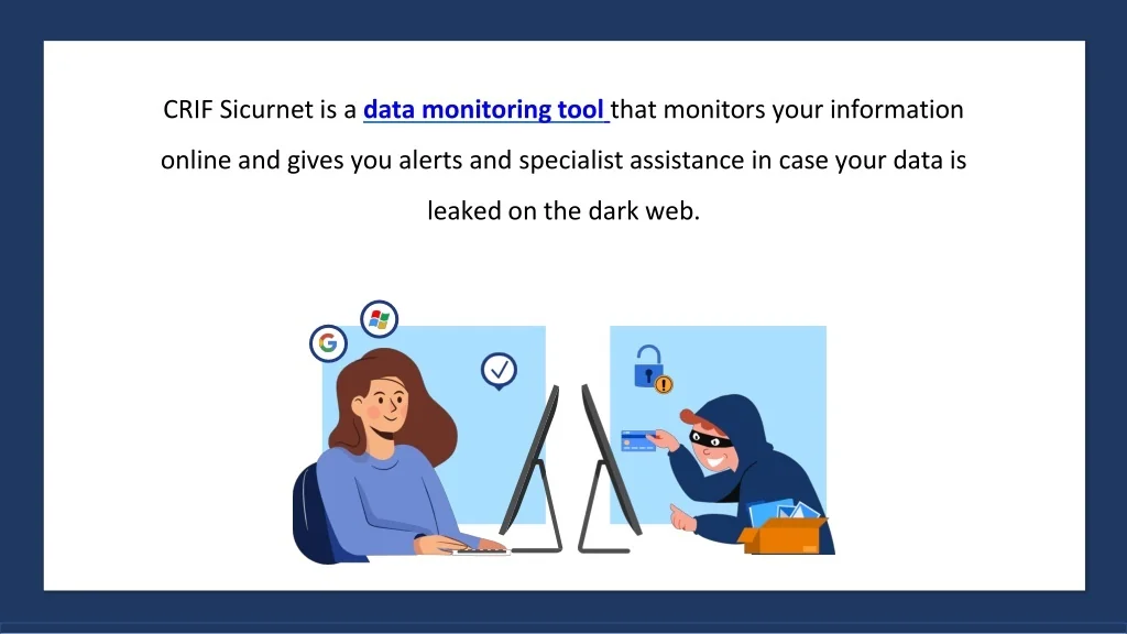 CRIF Sicurnet is a data monitoring toolthat monitors your information online and gives you alerts and specialist assistance in case your data is leaked on the darkweb.