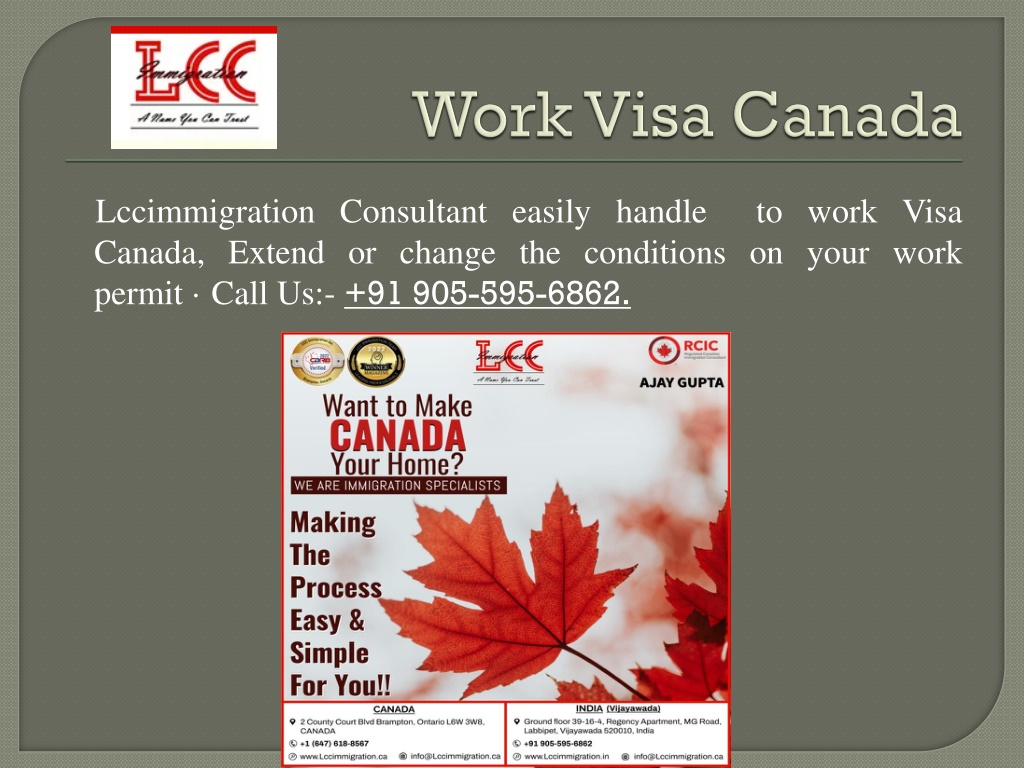 Work Visa Canada Lccimmigration Consultant easily handle to work Visa Canada, Extend or change the conditions on your work permit · Call Us:- +91 905-595-6862.