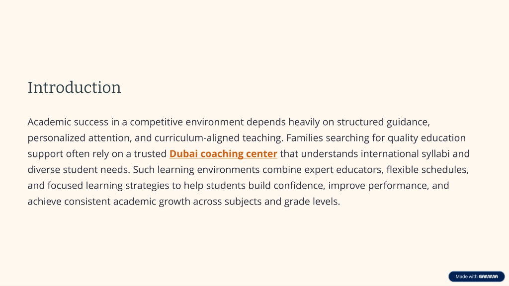 Academic success in a competitive environment depends heavily on structured guidance, personalized attention, and curriculum-aligned teaching. Families searching for quality education support often rely on a trusted Dubai coaching center that understands international syllabi and diverse student needs. Such learning environments combine expert educators, flexible schedules, and focused learning strategies to help students build confidence, improve performance, and achieve consistent academic growth across subjects and grade levels.<br>