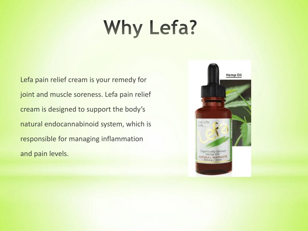 Lefa is specially designed for old-age people who solely rely on natural solutions to comfort inflammation and pain. Lefa’sformulas are based on the whole plant methodology incorporating a full entourage of phytocannabinoids rather than one isolated cannabinoid such as CBD. Lefa Pain Relief Cream
