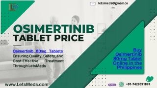 letsmeds@gmail.com OSIMERTINIB TABLET PRICE Buy Osimertinib 80mg Tablet Online in the Philippines Osimertinib 80mg Tablets: Ensuring Quality, Safety, and Cost-Effective Treatment Through LetsMeds www.LetsMeds.com +91-7428091874