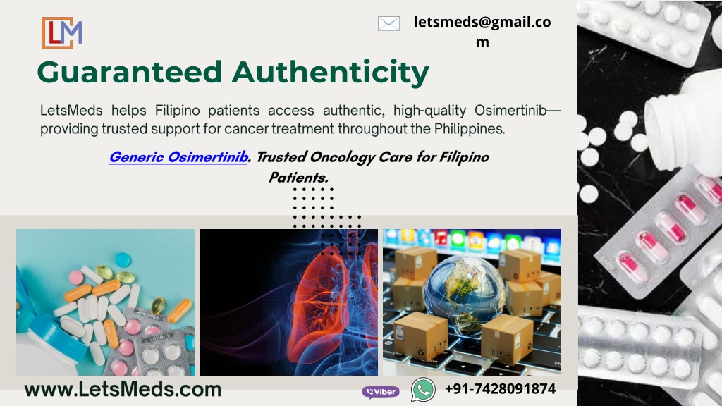 letsmeds@gmail.com Guaranteed Authenticity LetsMeds helps Filipino patients access authentic, high-quality Osimertinib—providing trusted support for cancer treatment throughout the Philippines. Generic Osimertinib. Trusted Oncology Care for Filipino Patients. www.LetsMeds.com +91-7428091874