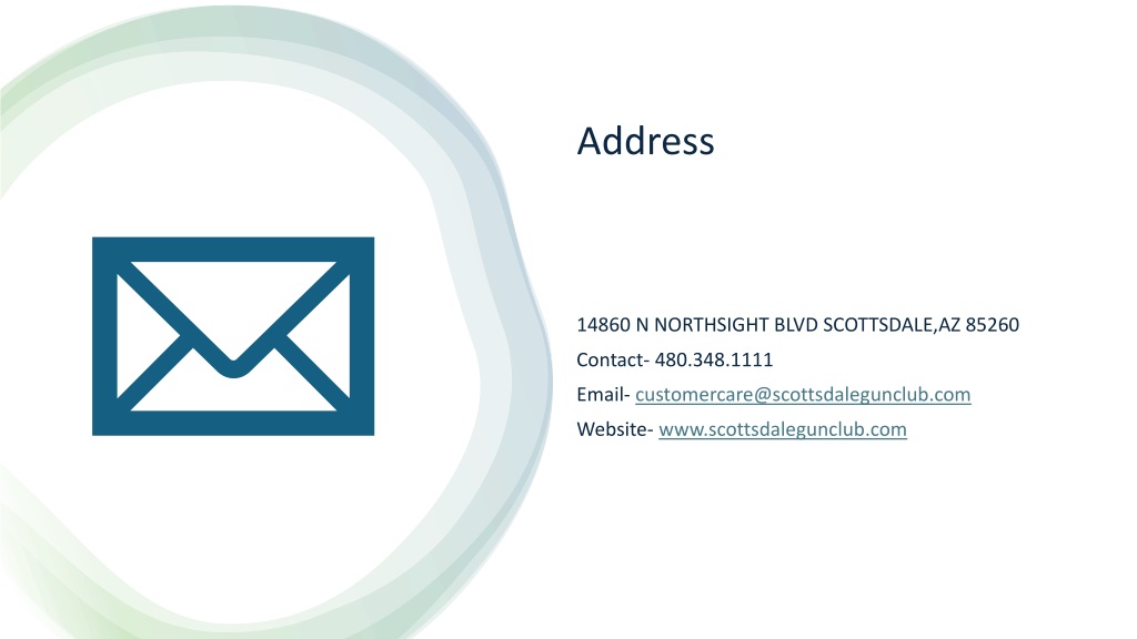 8. Address 14860 N NORTHSIGHT BLVD SCOTTSDALE,AZ 85260 Contact- 480.348.1111 Email- customercare@scottsdalegunclub.com Website- www.scottsdalegunclub.com