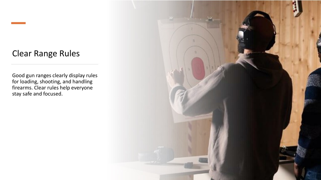 7. Clear Range Rules Good gun ranges clearly display rules for loading, shooting, and handling firearms. Clear rules help everyone stay safe and focused.