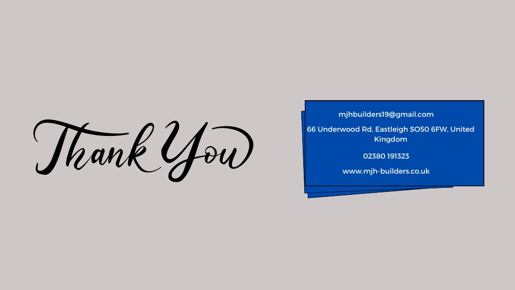 mjhbuilders19@gmail.com 66 Underwood Rd, Eastleigh SO50 6FW, United Kingdom 02380 191323 www.mjh-builders.co.uk