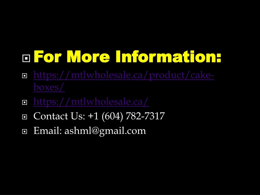 For More Information: • https://mtlwholesale.ca/product/cake-boxes/ • https://mtlwholesale.ca/ • Contact Us: +1 (604) 782-7317 • Email: ashml@gmail.com