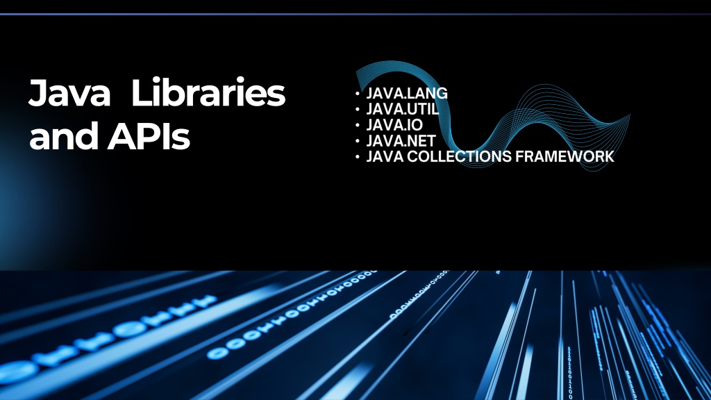 Java Libraries and APIs • JAVA.LANG • JAVA.UTIL • JAVA.IO • JAVA.NET • JAVA COLLECTIONS FRAMEWORK