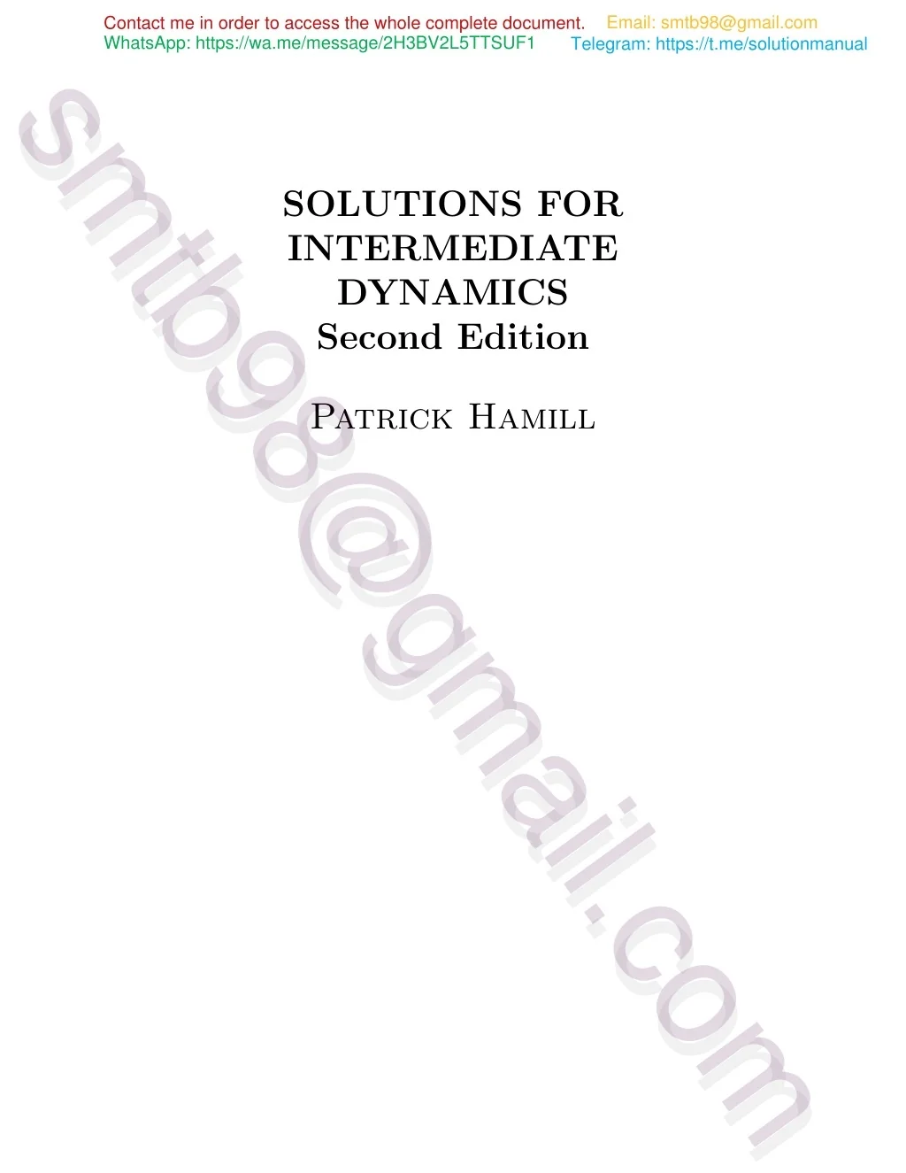 Email: smtb98@gmail.com Telegram: https://t.me/solutionmanual Contact me in order to access the whole complete document. WhatsApp: https://wa.me/message/2H3BV2L5TTSUF1 smtb98@gmail.com smtb98@gmail.com SOLUTIONS FOR INTERMEDIATE DYNAMICS Second Edition Patrick Hamill