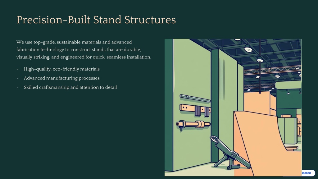 Precision-Built Stand Structures We use top-grade, sustainable materials and advanced fabrication technology to construct stands that are durable, visually striking, and engineered for quick, seamless installation. • High-quality, eco-friendly materials • Advanced manufacturing processes • Skilled craftsmanship and attention to detail