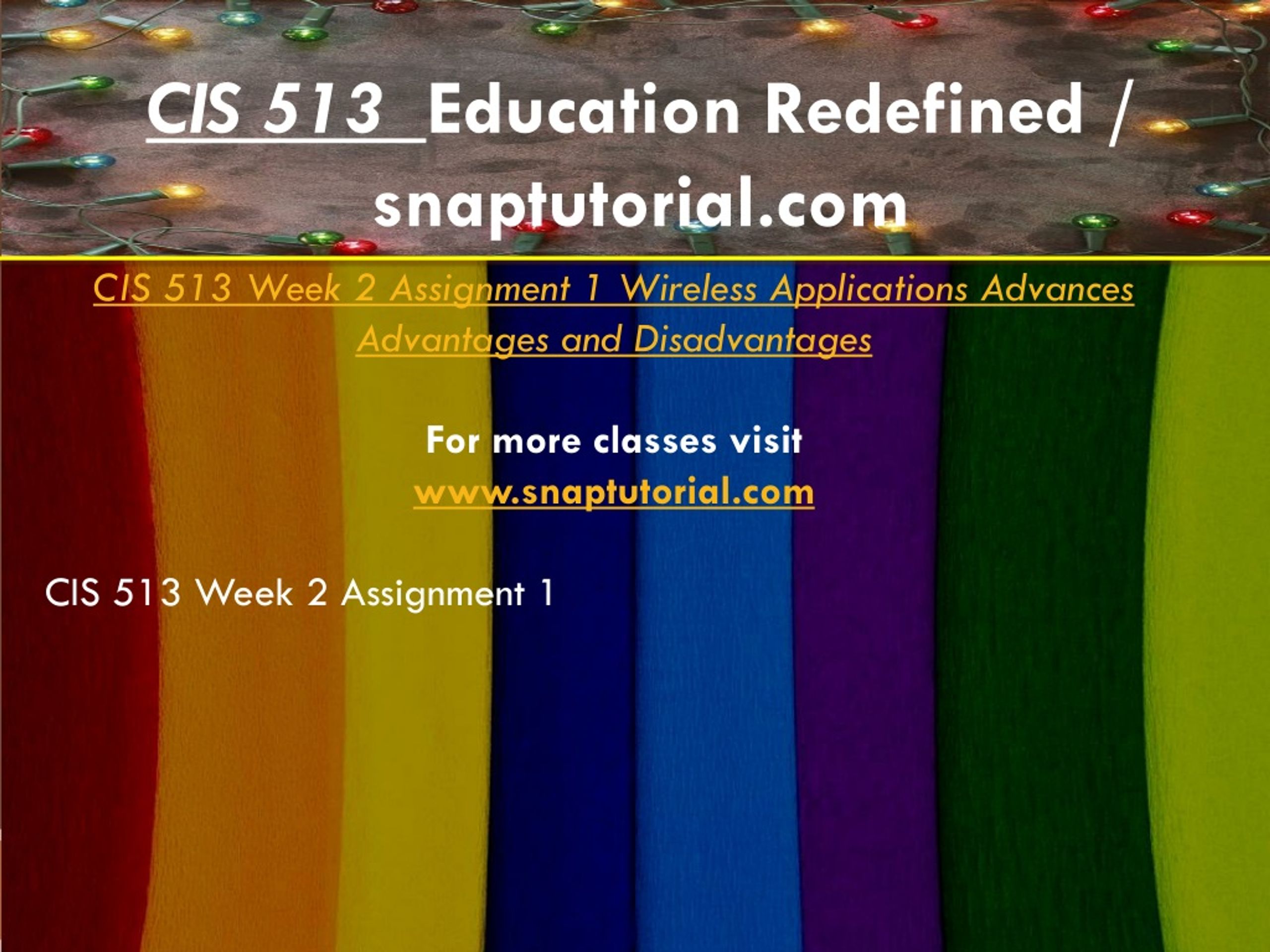 CIS 513 Education Redefined / snaptutorial.com CIS 513 Week 2 Assignment 1 Wireless Applications Advances Advantages and Disadvantages For more classes visit www.snaptutorial.com CIS 513 Week 2 Assignment 1