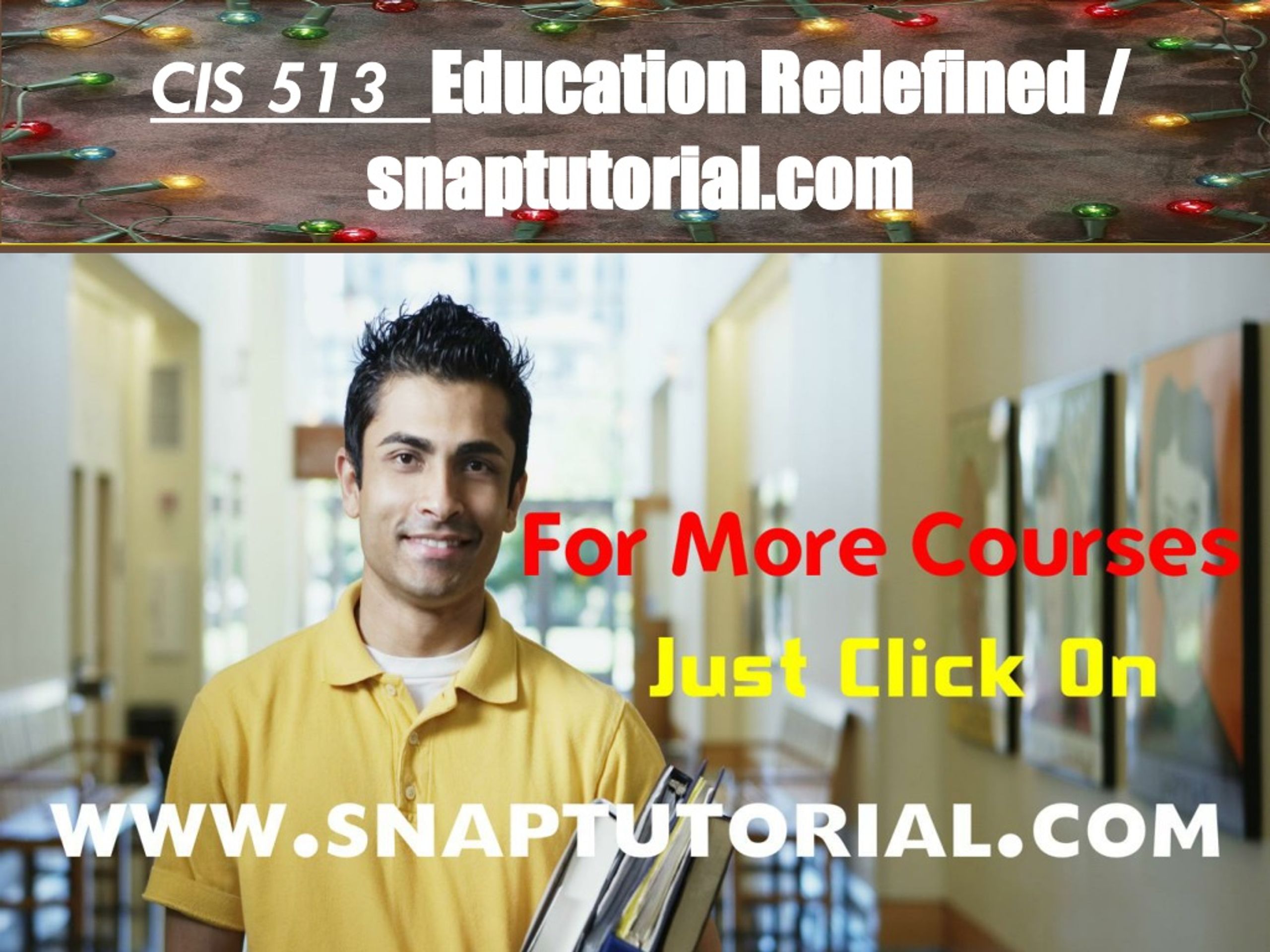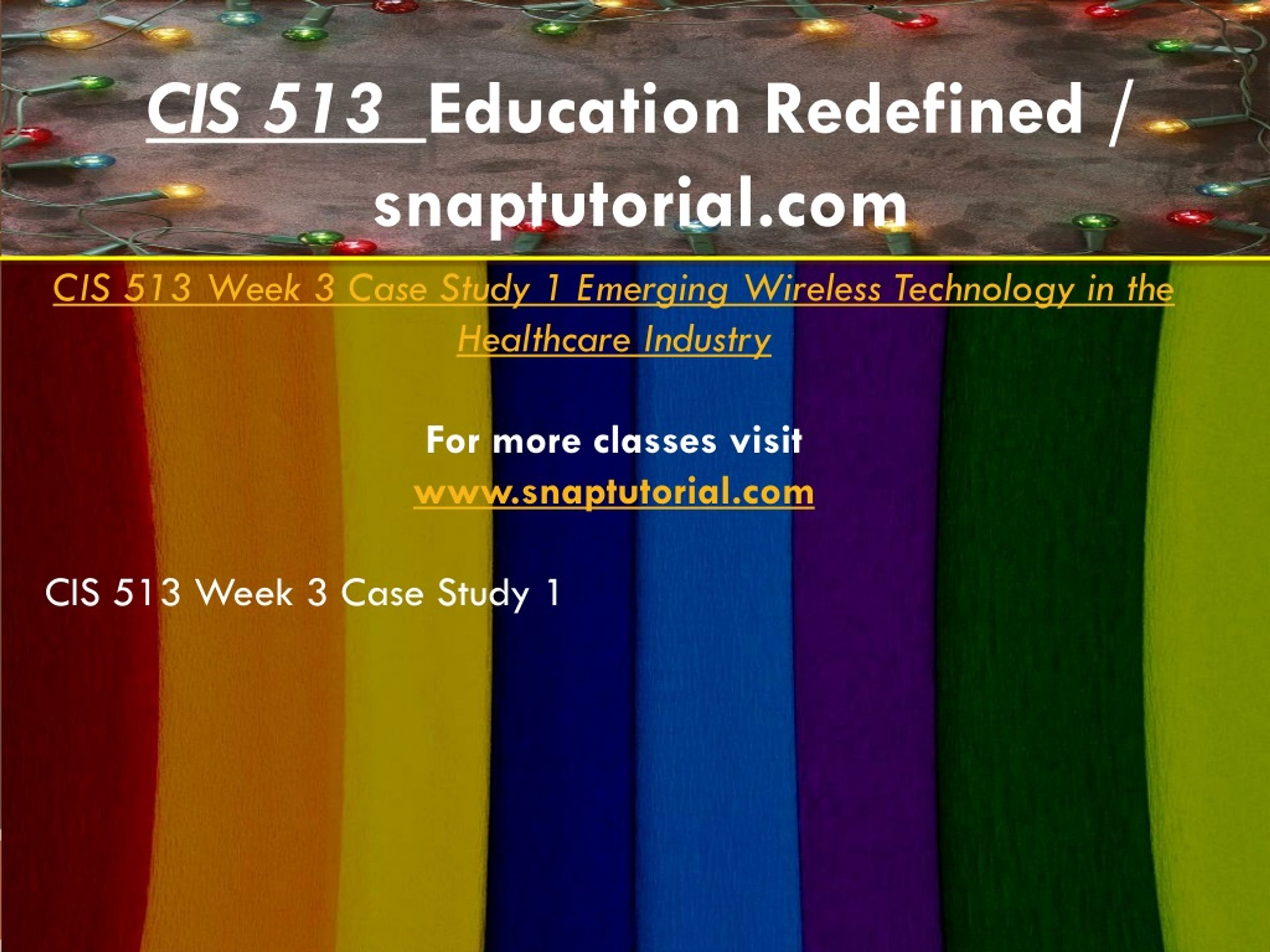 CIS 513 Education Redefined / snaptutorial.com CIS 513 Week 3 Case Study 1 Emerging Wireless Technology in the Healthcare Industry For more classes visit www.snaptutorial.com CIS 513 Week 3 Case Study 1