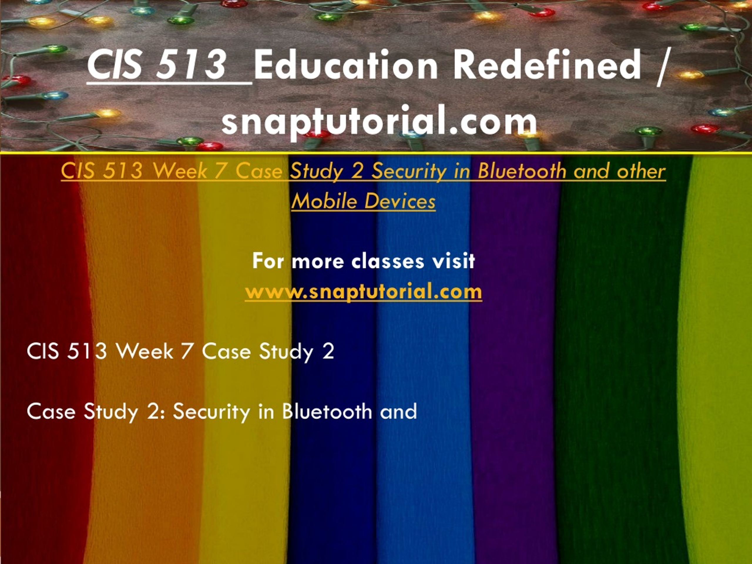 CIS 513 Education Redefined / snaptutorial.com CIS 513 Week 7 Case Study 2 Security in Bluetooth and other Mobile Devices For more classes visit www.snaptutorial.com CIS 513 Week 7 Case Study 2 Case Study 2: Security in Bluetooth and