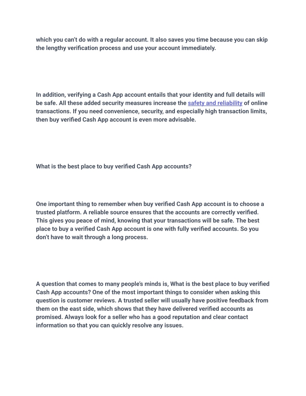which you can’t do with a regular account. It also saves you time because you can skip the lengthy verification process and use your account immediately. In addition, verifying a Cash App account entails that your identity and full details will be safe. All these added security measures increase the safety and reliability of online transactions. If you need convenience, security, and especially high transaction limits, then buy verified Cash App account is even more advisable. What is the best place to buy verified Cash App accounts? One important thing to remember when buy verified Cash App account is to choose a trusted platform. A reliable source ensures that the accounts are correctly verified. This gives you peace of mind, knowing that your transactions will be safe. The best place to buy a verified Cash App account is one with fully verified accounts. So you don’t have to wait through a long process. A question that comes to many people’s minds is, What is the best place to buy verified Cash App accounts? One of the most important things to consider when asking this question is customer reviews. A trusted seller will usually have positive feedback from them on the east side, which shows that they have delivered verified accounts as promised. Always look for a seller who has a good reputation and clear contact information so that you can quickly resolve any issues.