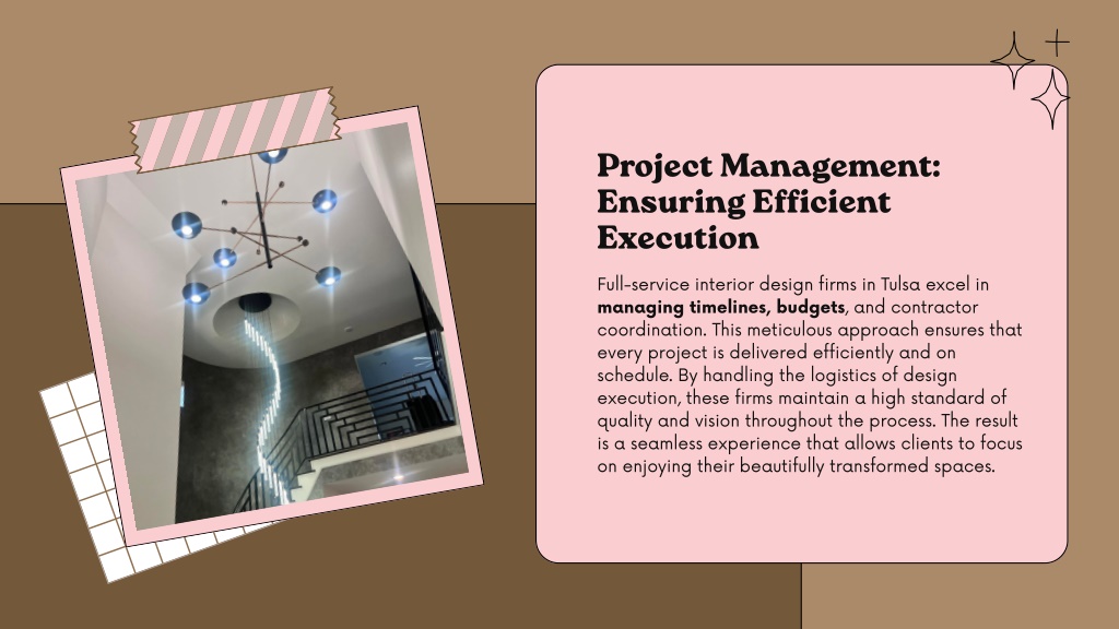 Project Management: Ensuring Efficient Execution Full-service interior design firms in Tulsa excel in managing timelines, budgets, and contractor coordination. This meticulous approach ensures that every project is delivered efficiently and on schedule. By handling the logistics of design execution, these firms maintain a high standard of quality and vision throughout the process. The result is a seamless experience that allows clients to focus on enjoying their beautifully transformed spaces.