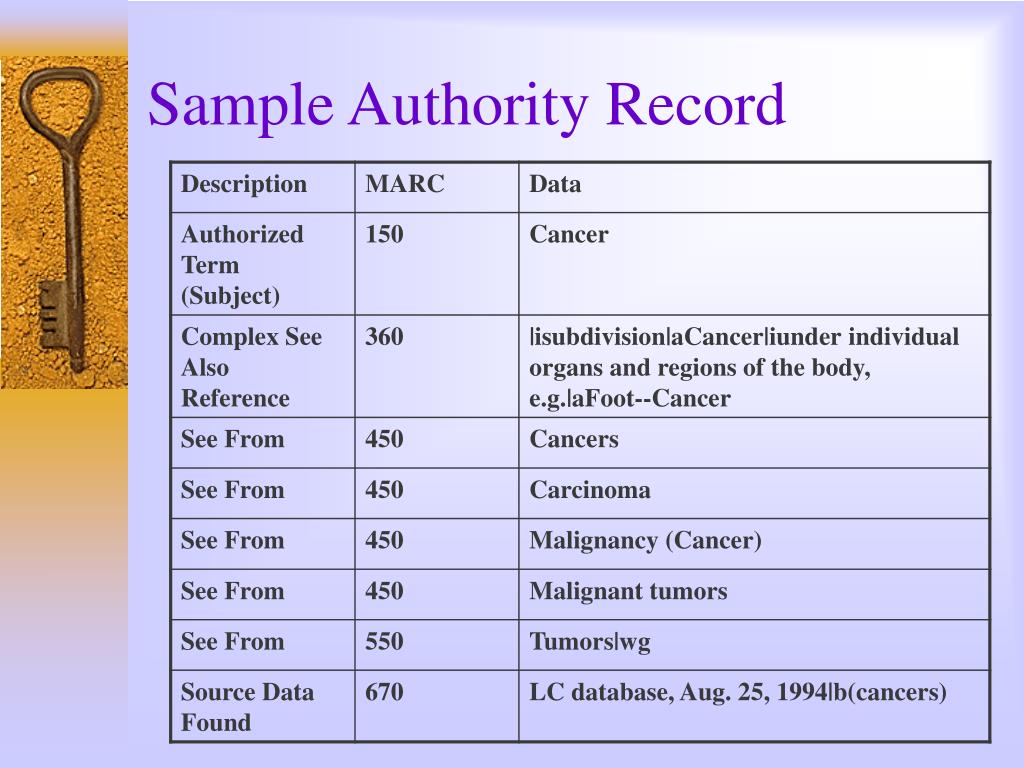 Elements of an Authority Record • Fixed Fields • Authtype • Subj_Use • Ser_Use • Name_Use • Authorized Term (100, 110, 150) • See From References (4XX, 5XX) • Source Data Found • Notes