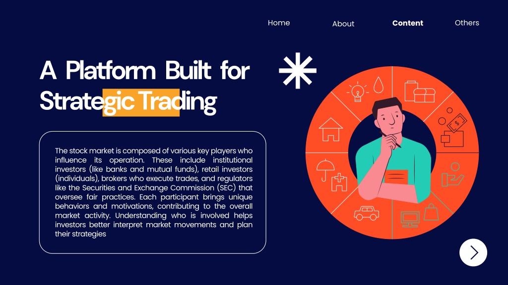 Home Others Content About A Platform Built for Strategic Trading The stock market is composed of various key players who influence its operation. These include institutional investors (like banks and mutual funds), retail investors (individuals), brokers who execute trades, and regulators like the Securities and Exchange Commission (SEC) that oversee fair practices. Each participant brings unique behaviors and motivations, contributing to the overall market activity. Understanding who is involved helps investors better interpret market movements and plan their strategies