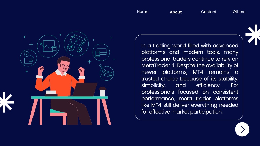 Home Others Content About Conclusion Professionals still prefer MetaTrader 4 because it delivers reliability, simplicity, and effective tools for market analysis and execution. For traders focused on consistency and control, meta trader platforms like MT4 continue to support disciplined meta trading strategies. Even as technology evolves, MT4 remains a dependable choice for professionals who value performance over unnecessary complexity.
