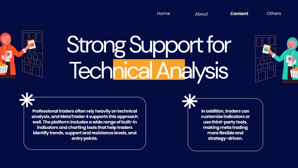 Home Others Content About Strong Support for Technical Analysis Professional traders often rely heavily on technical analysis, and MetaTrader 4 supports this approach well. The platform includes a wide range of built-in indicators and charting tools that help traders identify trends, support and resistance levels, and entry points. In addition, traders can customize indicators or use third-party tools, making meta trading more flexible and strategy-driven.