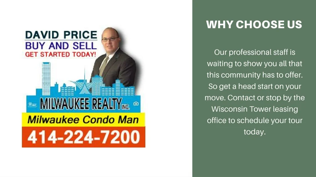 3. WHY CHOOSE US Our professional staff is waiting to show you all that this community has to offer. So get a head start on your move. Contact or stop by the Wisconsin Tower leasing office to schedule your tour today.
