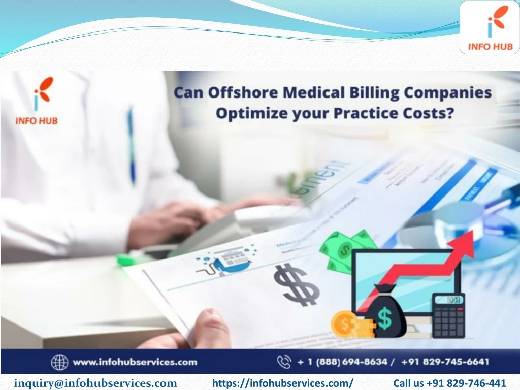 Can Offshore Medical Billing Companies Optimize Practice Costs • With rapid developments in the healthcare industry, many medical billing organizations in the United States are finding it increasingly challenging to service clients using only internal resources. Many physicians and hospitals are falling prey to high costs of maintaining staff, installing software and ensuring timely payments from insurance companies. Subcontracting some medical billing functions to offshore medical billing companies is the best approach. Offshore medical billing turns out to be a great alternative for healthcare practices who have a lot of billing staff turnover or a shortage of trained professionals in their location. • Many fixed expenses, such as training, benefits, insurance, and payroll, can be greatly reduced, if not eliminated, by outsourcing medical billing services – overhead costs to hardware/software installation costs. Are you affected by such extravagant costs? • A lot of clinics do not have the additional money or time to keep a full-scale billing staff and find a replacement when someone quits. As a result, by outsourcing this area of work, you can rely on your medical billing firm to offer a more controlled and sustainable approach to revenue cycle management. inquiry@infohubservices.comhttps://infohubservices.com/ Call us +91 829-746-441