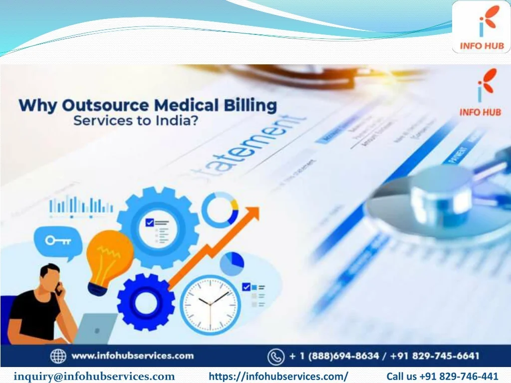 Why Outsource Medical Billing Services To India? To become a successful medical practitioner/practice, the primary focus should be on patient care. But many practices fail to pay attention towards patient satisfaction due to complexity involved in medical billing process. healthcare companies looking to outsource their medical billing services to India, since it improves their business efficiency and also acts as a great aid to acquire widened business benefits in no time. Recent studies say that many Here are some advantages to consider outsourcing medical billing services to India: inquiry@infohubservices.com https://infohubservices.com/ Call us +91 829-746-441
