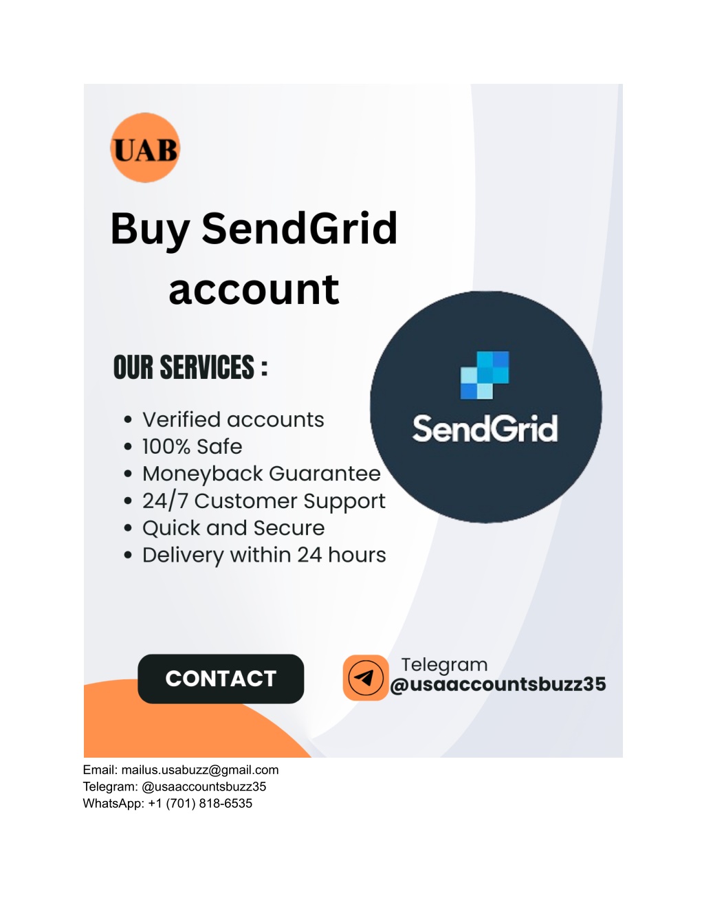 3. What Is SendGrid? SendGrid is a leading cloud-based email delivery service that helps businesses send transactional and marketing emails effortlessly. It was designed to solve one of the biggest challenges of online communication — email deliverability. Many companies face issues with emails landing in spam or being blocked by filters. SendGrid solves that problem by ensuring your emails reach your audience’s inbox, not their spam folders. With SendGrid, users can send bulk emails, automate campaigns, track results, and analyze performance — all in one place. Its infrastructure is built to support millions of emails daily while maintaining strong security and performance standards. Core Features of SendGrid: • High Deliverability: Ensures your emails reach real inboxes. • Email Automation: Schedule and send automated campaigns. • Transactional Emails: Perfect for receipts, notifications, and account alerts. • Analytics and Reports: Track open rates, clicks, and bounces in real time. • API Integration: Easily connect SendGrid with websites, CRMs, and applications. • Scalability: Handles large-scale email volumes for growing businesses. Whether you’re a startup, marketer, or eCommerce store owner, having a reliable SendGrid account helps streamline communication and maintain a professional image. ________________________________________ Benefits of Buying SendGrid Accounts from usaaccountsbuzz.com When you decide to buy SendGrid accounts, choosing the right provider is essential. At usaaccountsbuzz.com, we understand the value of verified, ready-to-use accounts for your business. Our SendGrid accounts are pre-verified, secure, and come with complete setup support to ensure you can start sending emails immediately. Here are some key benefits of buying from usaaccountsbuzz.com: 1. Verified and Ready-to-Use Accounts Every SendGrid account we provide is fully verified and ready for use. You don’t have to worry about verification delays or setup issues — simply log in and start sending emails right away. 2. 100% Secure Account Transfer Your privacy and safety are our top priorities. We guarantee a secure transfer process, ensuring all account credentials are delivered safely and exclusively to you. 3. Affordable Prices We believe quality shouldn’t come with a high price tag. Our SendGrid accounts are competitively priced, giving you top-tier performance at an affordable cost. 4. Fast Delivery Time is money. Once you purchase, you’ll receive your verified SendGrid account within a short period — allowing you to start your email campaigns instantly. 5. Reliable Customer Support Our dedicated support team is always available to help you set up and maintain your SendGrid account. We ensure a smooth experience from purchase to operation. 6. Trusted by Professionals Thousands of customers trust usaaccountsbuzz.com for verified digital products, crypto, and banking accounts. We maintain a 100% satisfaction rate through transparency, fast service, and reliability.