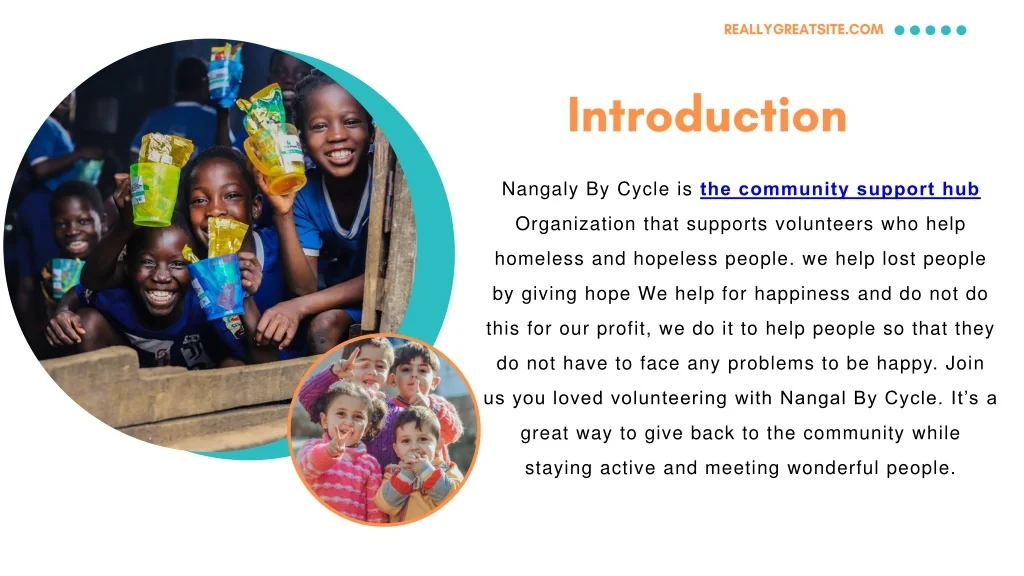 REALLYGREATSITE.COM Introduction Nangaly By Cycle isthe community support hubOrganization that supports volunteers who help homeless and hopeless people. we help lost people by giving hope We help for happiness and do not do this for our profit, we do it to help people so that they do not have to face any problems to be happy. Join us you loved volunteering with Nangal By Cycle. It’s a great way to give back to the community while staying active and meeting wonderful people.
