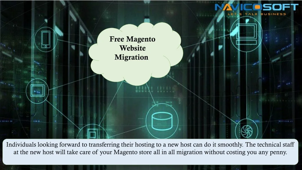 Free Magento Website Migration Individuals looking forward to transferring their hosting to a new host can do it smoothly. The technical staff at the new host will take care of your Magento store all in all migration without costing you any penny.
