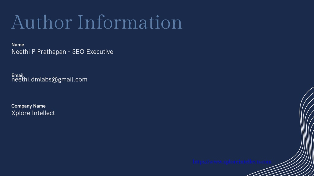 Name • Neethi P Prathapan - SEO Executive • Author Information • Email • neethi.dmlabs@gmail.com • Company Name • Xplore Intellect https://www.xploreintellects.com