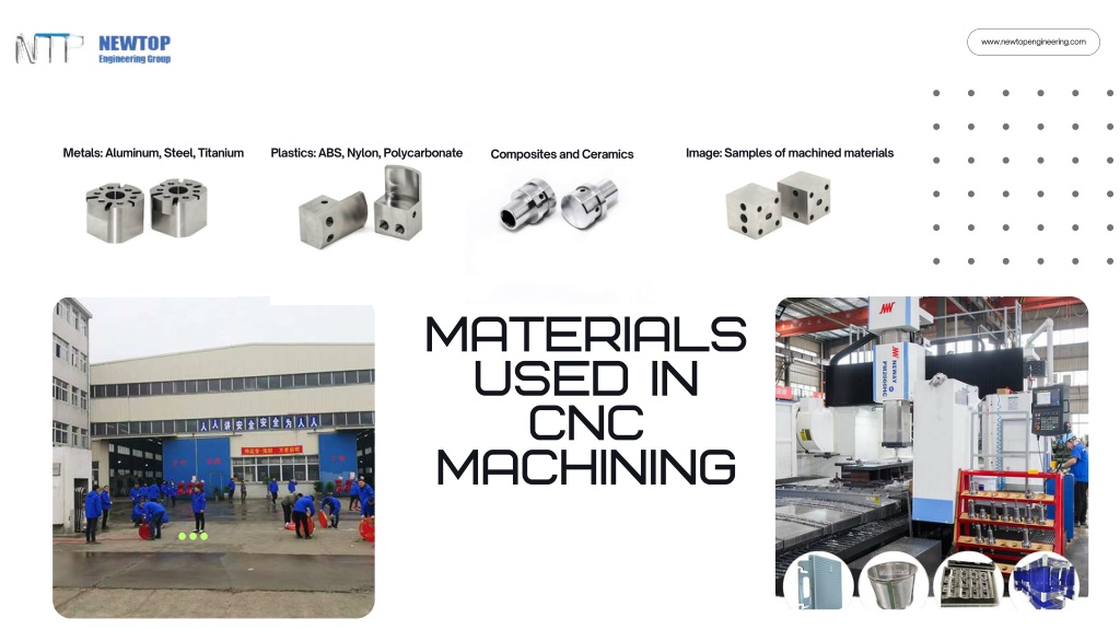 www.newtopengineering.com Metals: Aluminum, Steel, Titanium Plastics: ABS, Nylon, Polycarbonate Image: Samples of machined materials Composites and Ceramics Materials Used in CNC Machining
